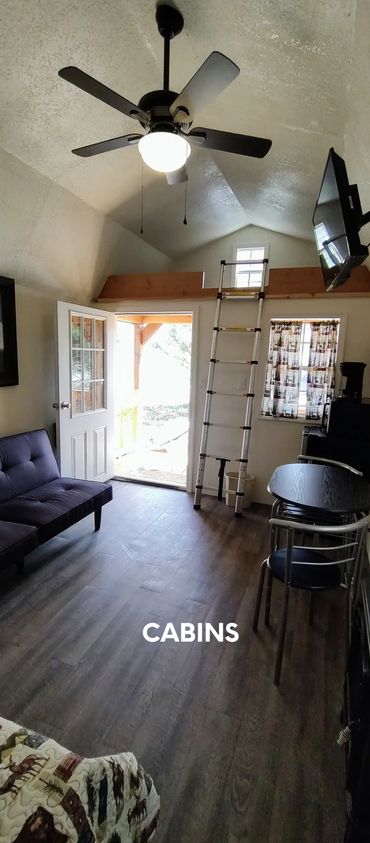 Sites 16-18. Three cabins are available. Sleeps 4-6. The cabins have a queen size bed with bedding provided, futon and two lofts, coffee maker, microwave and mini fridge. Please bring extra bedding if sleeping more than two people. You will have access to the bathrooms and water. Picnic table and fire ring. *ELECTRIC ONLY*