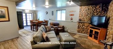 Bottom floor of the Main House is available for rent. Sleeps 6-8. One king size bed and 2 bunk beds. Bedding provided. Also one full size fold out chair. Private bath with towels provided. Full kitchen. Hot tub, gas grill and outdoor dining. 2 night min. (holidays 3 night min.)