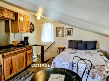 One cottage is available for rent. Sleeps 6-8. Queen size bed with bedding provided. 2 futons and a twin over full bunk bed. Private bath with towels provided. Full kitchen. Hot tub, gas grill and outdoor dining on the deck. 2 night min. (holidays 3 night min.)